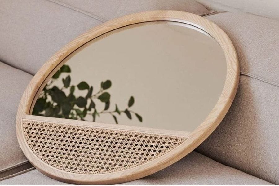 Gương mây được làm từ những sợi mây tre tự nhiên mang lại vẻ đẹp nhẹ nhàng. Khung gương chắc chắn, bền bỉ nhờ chất liệu mây có độ đàn hồi cao.